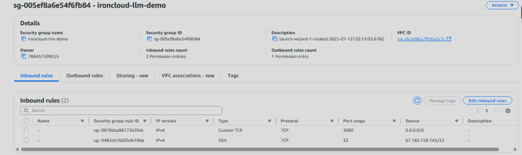 You’ve successfully deployed IronCloudLLM on AWS using the official AMI. The AMI boots with Docker preinstalled and a full LibreChat stack under /opt/ironcloudllm. Once launched, you can access LibreChat on port 3080, connect it to Bedrock or OpenAI, and begin using secure, self-hosted AI inside your AWS environment.